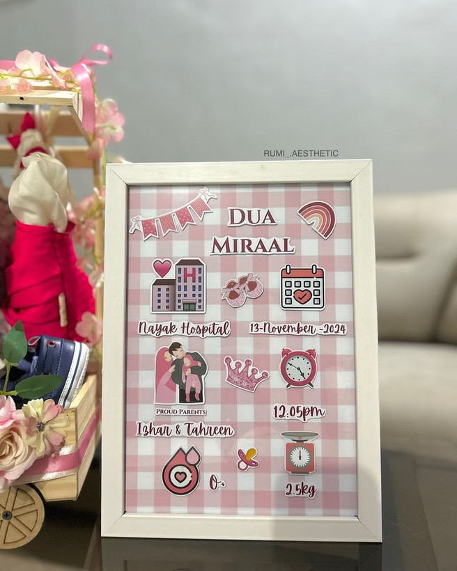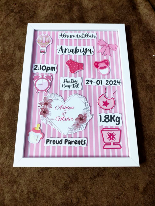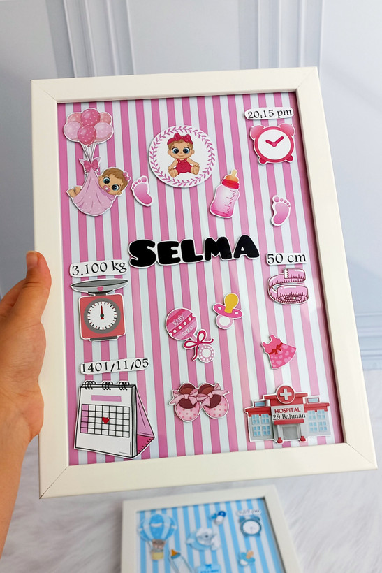 تابلو مشخصات تولد نوزاد از بهترین پروفیل موجود 2x2 ساخته شده است که کیفیت و ماندگاری محصول را تضمین می کند. کلیه ی قاب های مجموعه دارای شیشه و آویز (جهت نصب روی دیوار) می باشند.
