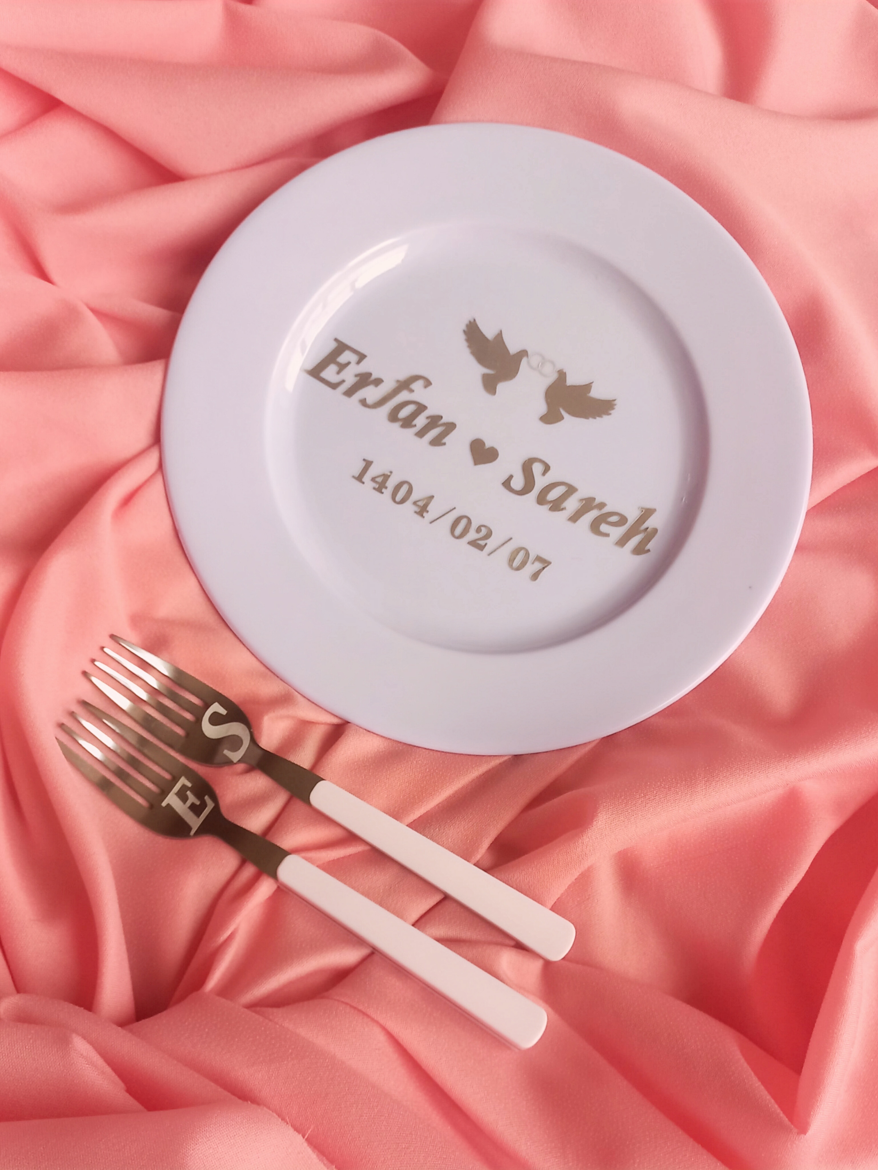 ست کیک خوری شامل:یک عدد بشقاب-جام شربت ۲ عدد-چنگال ۲ عدد-شمع ۲ عدد-کارد و کفگیر کیک