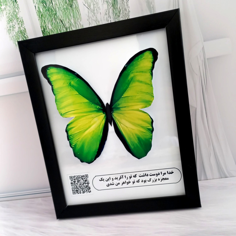 مشخصات تابلو(رنگ قاب_رنگ و مدل پروانه_اندازه دلخواه) را از طریق واتساپ برای ما بفرستید